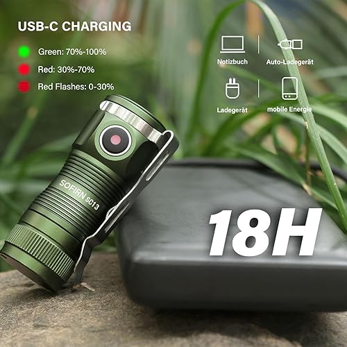 Sofirn SC13 Mini Taschenlampe Led Aufladbar, 1300 LM Taschenlampe Klein, Led Taschenlampe Extrem Hell mit 5 Modi, IP68 Wasserdichte EDC taschenlampe für Camping, Wandern, Notfäll, Outdoor Taschenlampe
