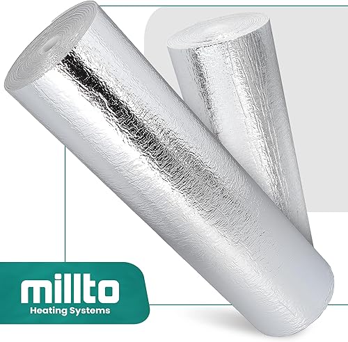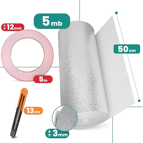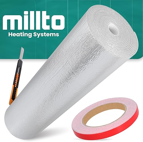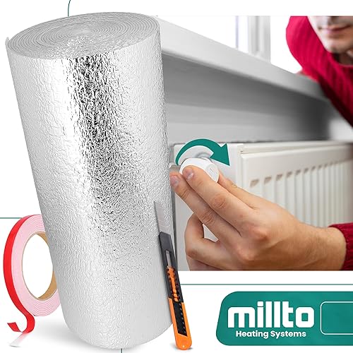 Millto Heizkörper Reflexionsfolie 5m x 0,5m x 3mm | Alufolie Isoliermatte Dämmung Isolierfolie Thermomatte Thermofolie Heizung Isolierung Wand Dämmfolie Wandisolierung Doppelklebeband Cuttermesser