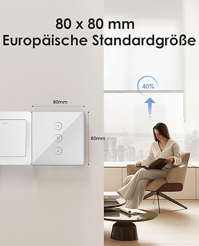 Allevoi Wlan Rolladenschalter mit Prozentfunktion, Smart Rolladen Zeitschaltuhr Sprachsteuerung, Kompatibel mit Alexa/Google Home/Smart Life, Jalousien Rolladensteuerung Benötigt Nullleiter