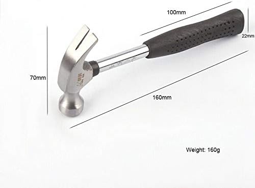 Mini-Klauenhammer, Stahl, ergonomischer Gummigriff, Schwarz und Silber, 160 mm
