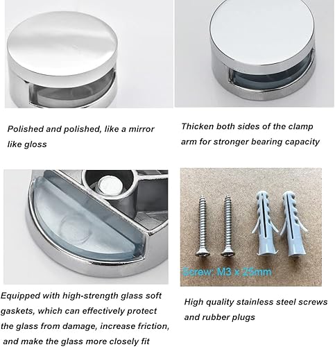 Onous 8 Stück Klemmbefestigung Abstandshalter für Glas Acrylglas Bilder Wall Art Schraubenmontage Zinklegierung Spiegelclip Spiegelhalterung Halter inkl 8Edelstahlschrauben und 8Dübel