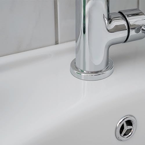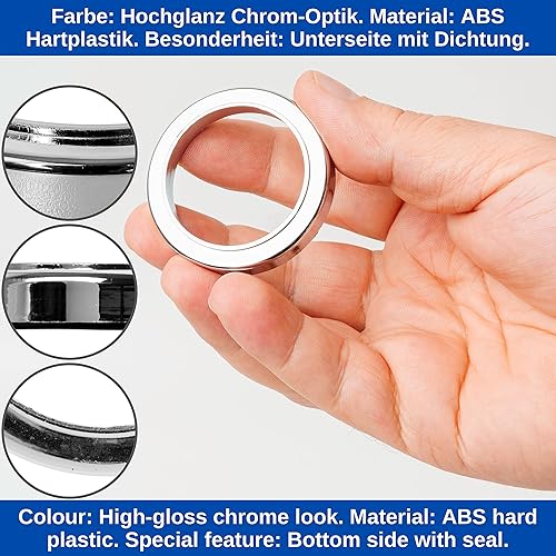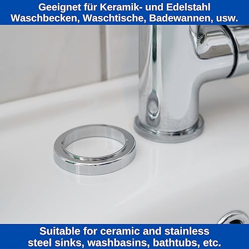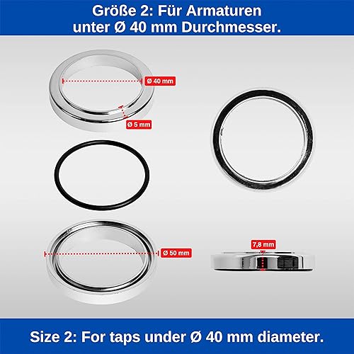Waschbecken Armatur Rosette, 2 Pack, Ø 50 mm Außen, Ø 33 mm Innen, 6 mm Höhe, ABS in Hochglanz-Optik, mit Dichtung, Abdeckrosette Wasserhahn, Zubehör Grundplatte zur Abdeckung größerer Lochdurchmesser