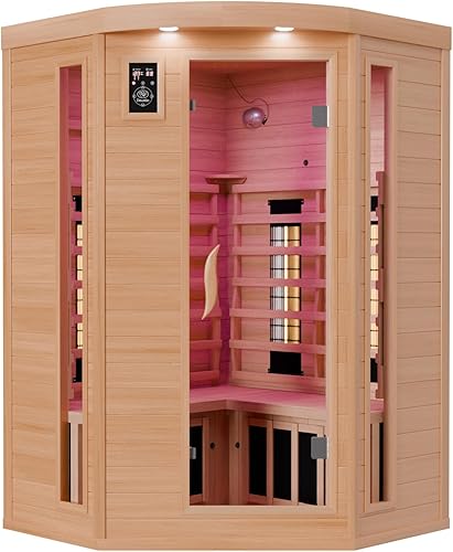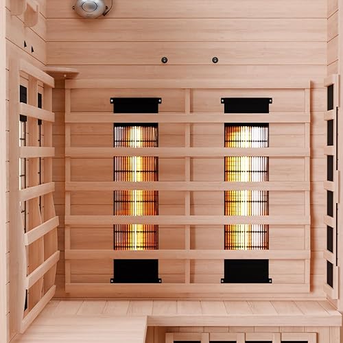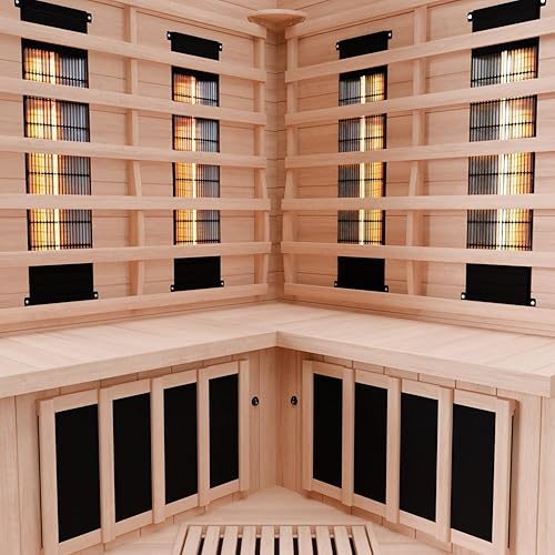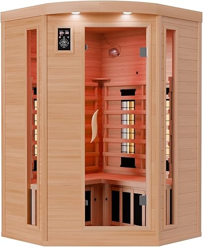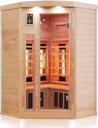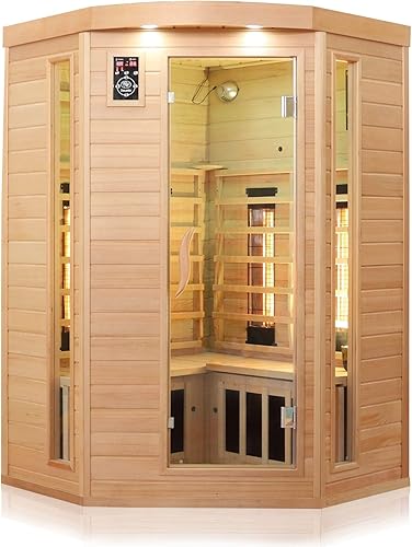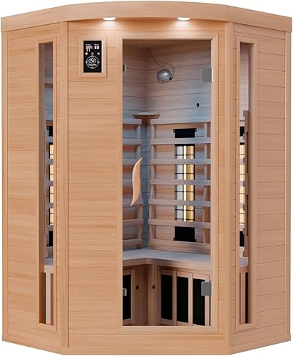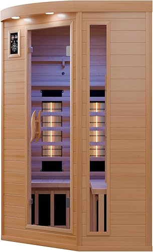 Dewello Infrarotkabine LAKEFIELD 3 120x120 DUAL-THERM für 1-2 Personen aus Hemlock Holz mit Vollspektrumstrahler