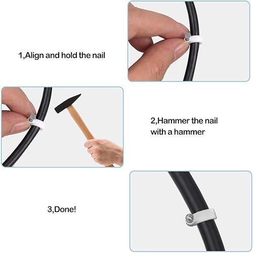 Kabelschelle Nagelschelle 200 Stück Kabel Nagel Befestigung Nagel Weiß Haftclips mit eingestecktem Nagel,Kabelclips Kabelhalter Rund 10mm für Netzwerkkabel