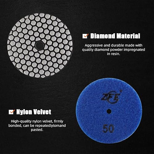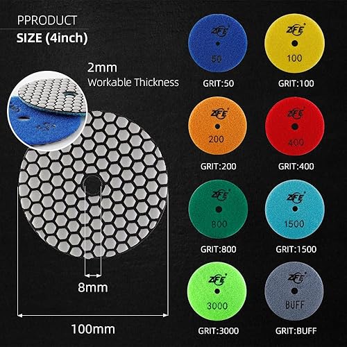 Diamant-Polierpads, ZFE 9-teiliges 4-Zoll-100-mm-Trockenpolierpad-Set mit Trägerplatte zum Polieren von Granit-Beton-Marmor-Quarzstein-Arbeitsplatten