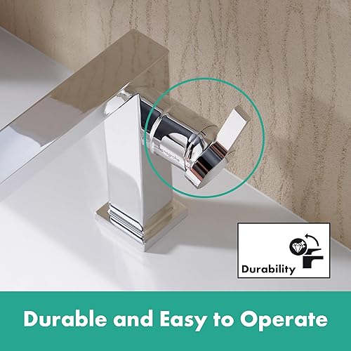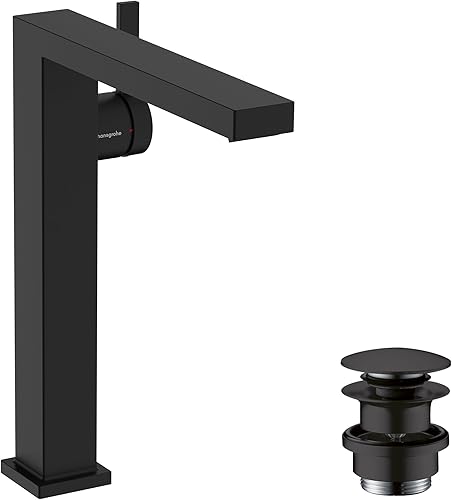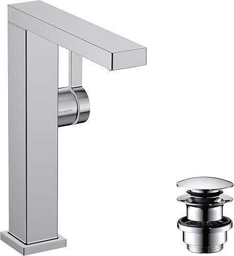 hansgrohe Tecturis E - Waschtischarmatur mit Zugstangen-Ablauf, energiesparend (CoolStart), Wasserhahn Bad mit Auslauf Höhe 133 mm, Mischbatterie Waschbecken wassersparend (EcoSmart+), Chrom, 73023000