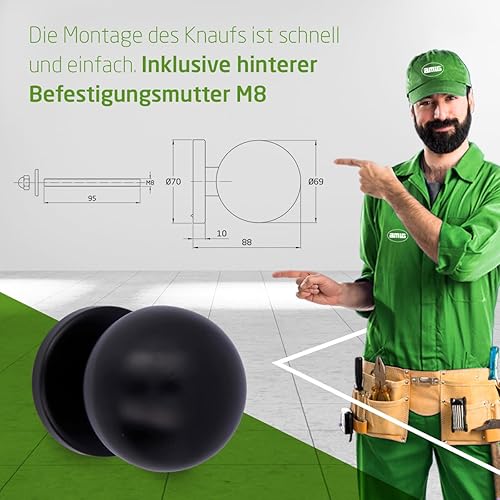 Amig - Türklinken | Aus Edelstahl | Griff: Ø70 mm | Schwarz | Beständig gegen Abrieb, Rost und Korrosion