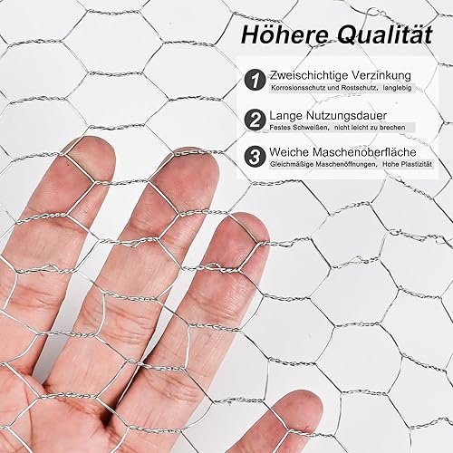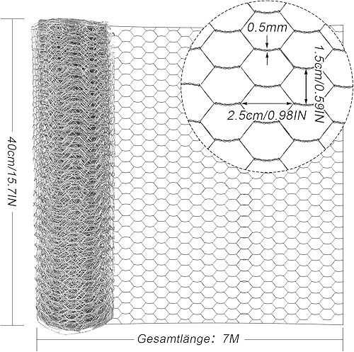 Cieex Kaninchendraht, 0.4 x7m Hasendraht Drahtzaun, Maschendraht Verzinkt, Hühnerdraht Feinmaschig, Dechseckgeflecht für Tierzäune, Handwer ksartikel und Gemüsegarten