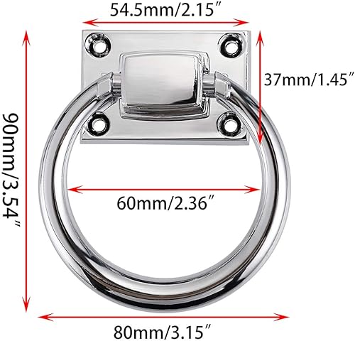 JuxYes 4 Stück 80 mm Stuhllehner Schrankgriff Ringe Modern Holz-Türklopfer Runde Stuhl Rückenlehne Griff für Stühle Ottomane Schranktür (Silber)