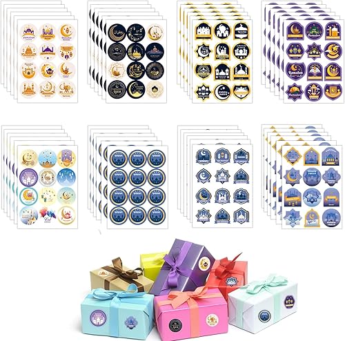 32 Blätter Eid Mubarak Aufkleber, Ramadan Aufkleber, 384 Dots Runde Aufkleber Dekoration, Ramadan Geschenkaufkleber, Muslim Party Deko Basteln für Geschenke Verpackung Muslim Islam Party Supplies