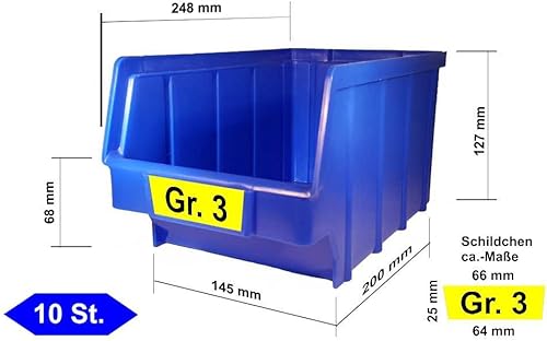 26 Stück Kunststoff Stapelboxen blau Gr.3 (145 x 248 x 127 mm) PP Sichtlagerkästen Stapelkästen │ P-D-W®