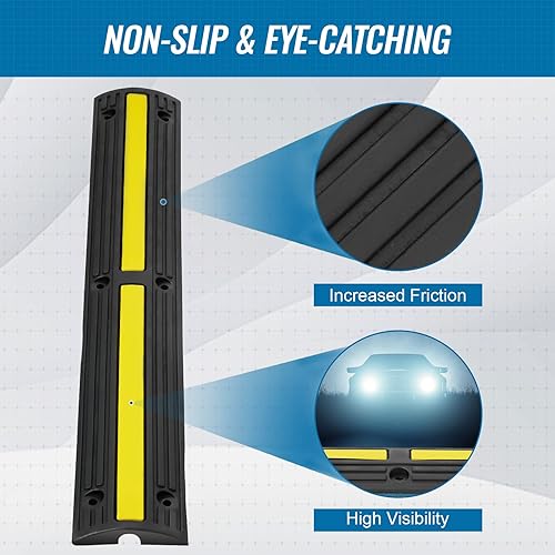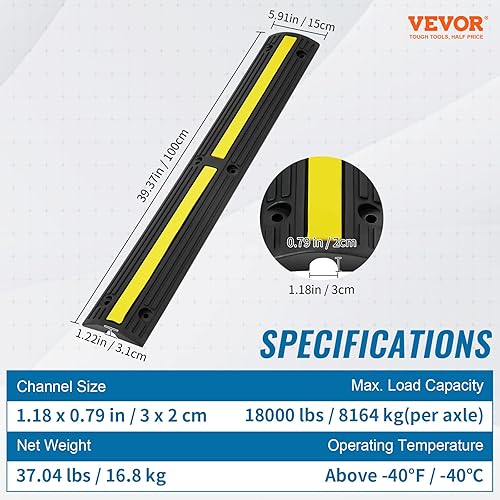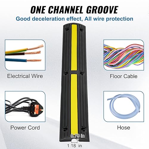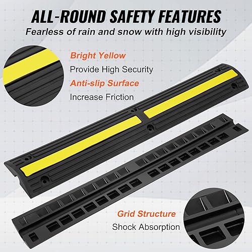 VEVOR 4x 1-Kanal Schlauchbrücke 100x15x3,1cm Kabelbrücke Gummi Überfahrschutz Kabel Kanalgröße 3x2cm Max. Tragfähigkeit 8164kg pro Achse Schwellenrampe Ideal für Wohngebiete Private Garagen Gärten