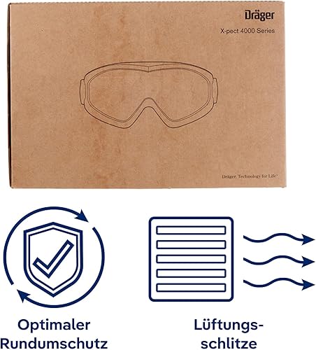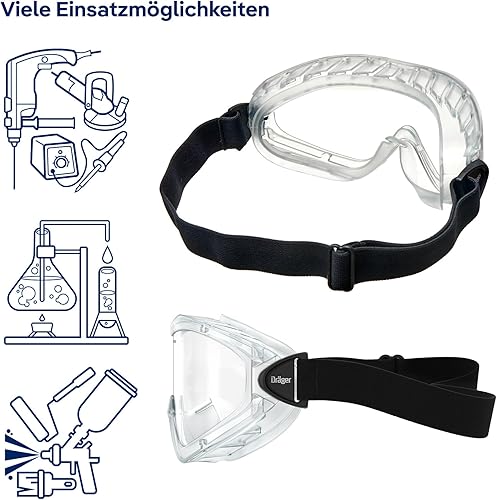 Dräger Schutzbrille X-pect 4200 | Beschlagfreie Vollsichtbrille auch für Brillenträger | Für Baustelle, Labor, Werkstatt | Kratzfeste und bruchfeste Polycarbonatscheibe