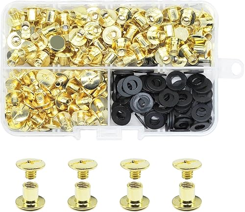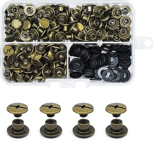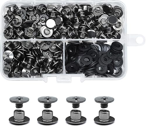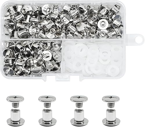 JINTANG 90 Set Chicago buchschrauben,M5x6mm binding Schrauben kit,schraubnieten für leder,ledernietenset,verwendet für DIY Leder handwerk kleidung tasche,Bücher und Dekoration (silbrig)