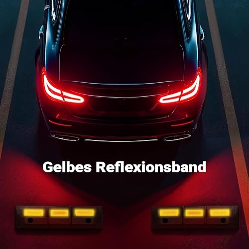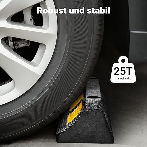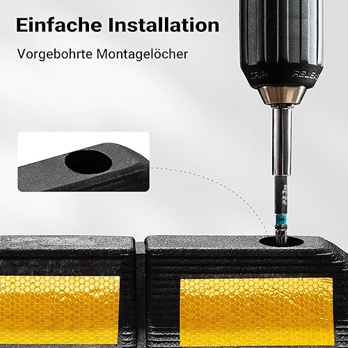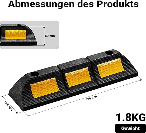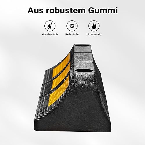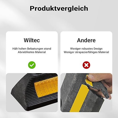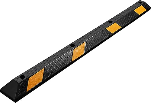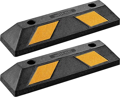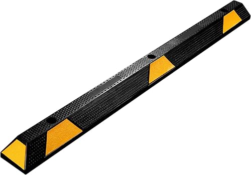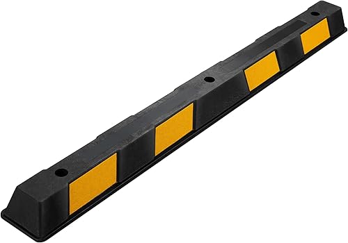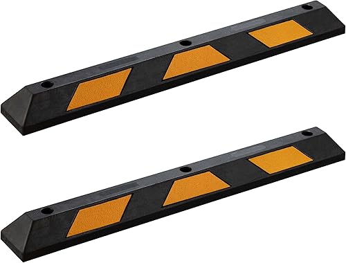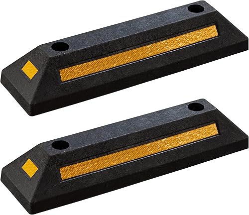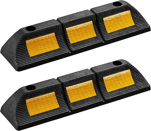 Wiltec Radstopper 56 x 15 x 10 cm, 2x Einparkhilfe aus Gummi, Parkplatzbegrenzung mit gelben Reflexionsstreifen & Schraubrillen, Parkplatzsperre für Garage