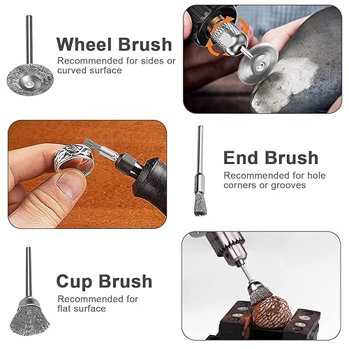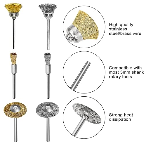 40 Stück Drahtbürsten Kit, Schleifbürste Set für Bohrmaschine, Stahldraht Radbürste Cup Bürsten Stiftbürste Anzug mit 3mm Schaft, Elektrisch Drehwerkzeug für Polier Schleifen Reinigung