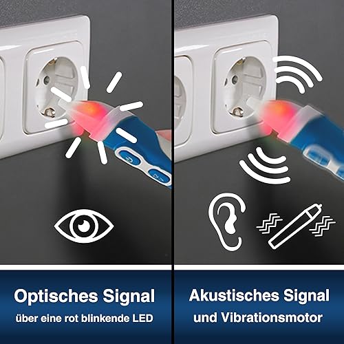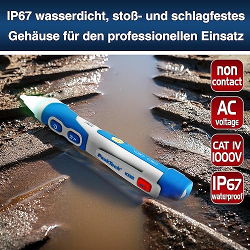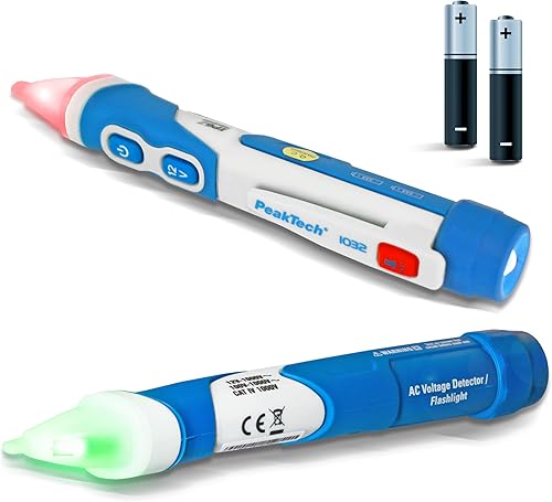 PeakTech 1032 AC Spannungsprüfer berührungslos [+LED Signal Lampe & Vibration] 12-1000 V AC Betriebsbereich, Leitungssuchgerät, Leitungssucher, Phasenprüfer Stromprüfer, Leitungsfinder - 160x28mm