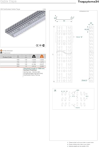 12m Kabelbahn 150x60 verzi. Kabelrinne Kabeltrasse Kabelkanal inkl.14 Verbinder, Silber