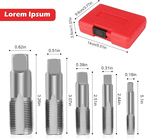 5 Stück BSP Rohrgewindebohrer Set, 1/8 Zoll, 1/4 Zoll, 3/8 Zoll, 1/2 Zoll, 3/4 Zoll BSP Gewindebohrer Set mit Aufbewahrungsbox Kohlenstoffstahl Handgewindebohrer Set für genaue Gewinde
