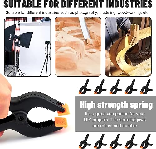 Klemmen, 10 Stücke Kunststoff Halteklammern, Zwingen für Ateliers, Kunst, Handwerk, Holzwerkstatt, Fotografie (Schwarz)