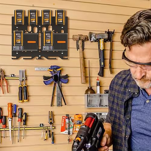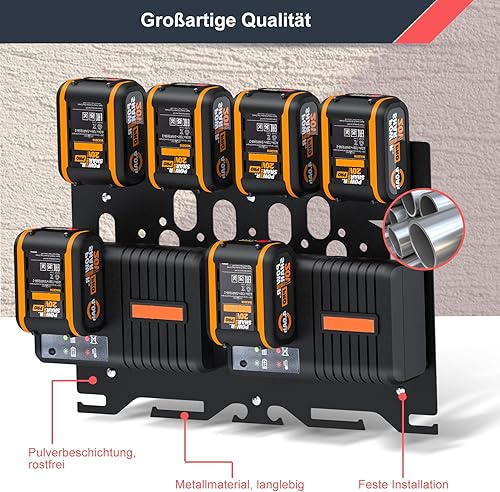 DITKOK Upgrade 3-in-1 Wandhalterung für Worx Ladegeräte, Akkus und Akku-Bohrmaschine, Metall-Akkuhalter für 4 Stück 20-V-Akkus, 2 WA3867 Ladegeräte/2 WA3880 Ladegeräte/1 WA3883 Doppelladegerät