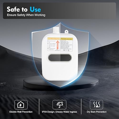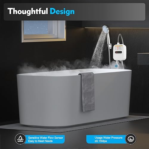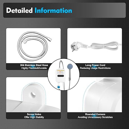 TFIANYNI Elektrischer Durchlauferhitzer Mini 3500W LED Elektrischer Warmwasserbereiter Für Dusche, IPX4, Duschschlauch+Duschkopf+Duschhalter, Weiß