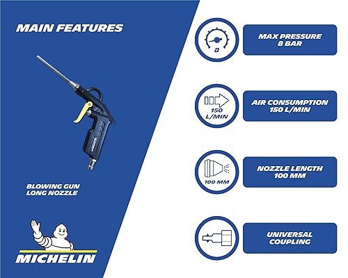 MICHELIN Ausblaspistole kurzer Auslauf + langer Auslauf 10 cm - Luftverbrauch: 150 l/min, maximaler Druck: 4-6 bar
