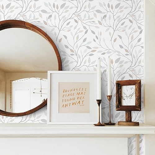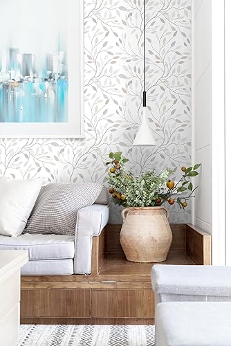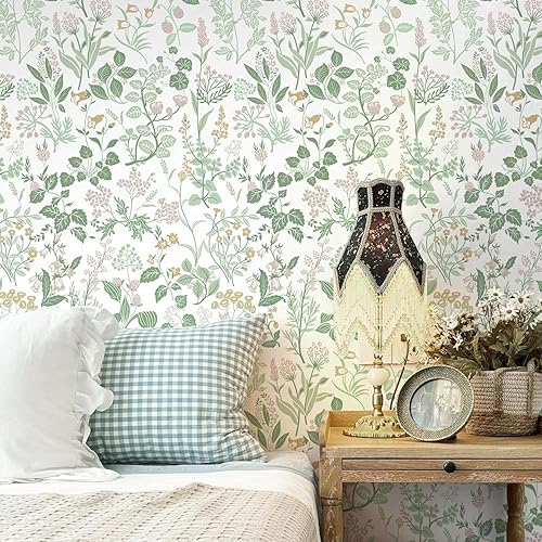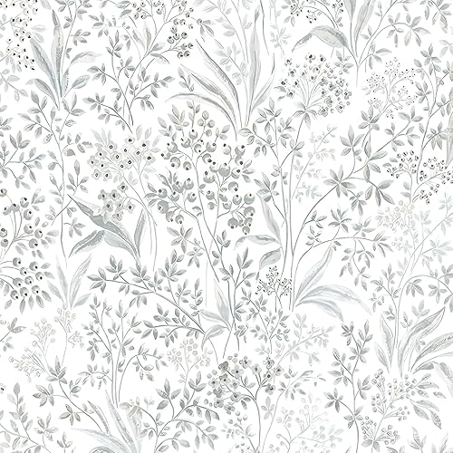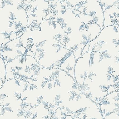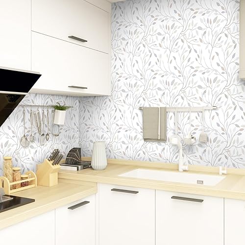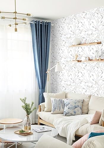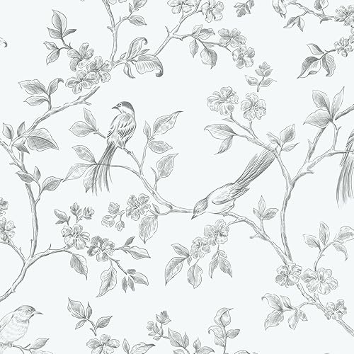 Yomshi Blume und Vogel Skizze Tapete Weiß Selbstklebende Tapete 41CMx10M Wasserdicht Möbelfolie Blume Folie Dekorfolie für Wohnzimmer Schlafzimmer Küche