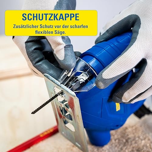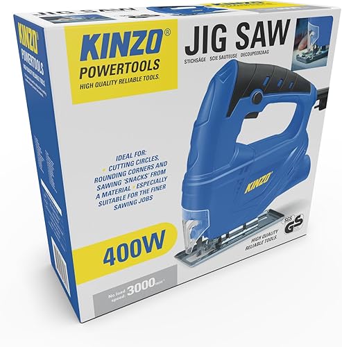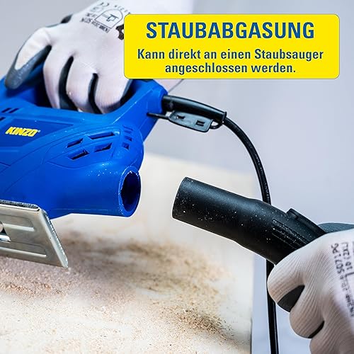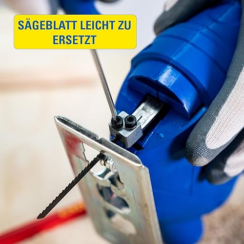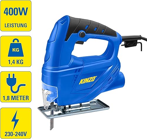 Kinzo Stichsäge - 230V - 400W - mit Staubabsaugung - Schutzblatt - Verschiedene Materialien - Holz bis zu 65 mm - Metall bis zu 6 mm - Blau, 8711252064161