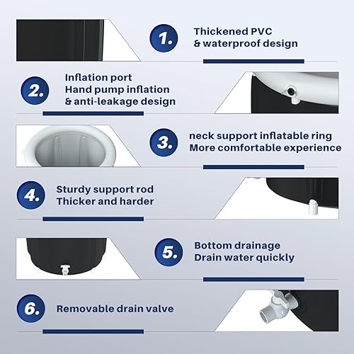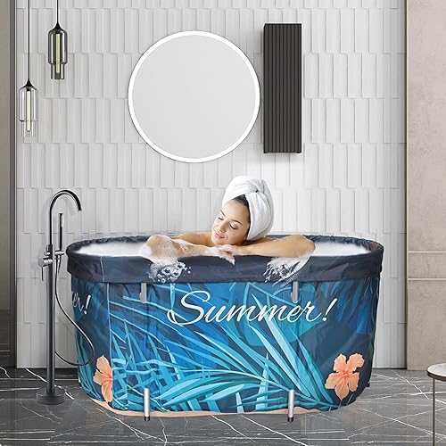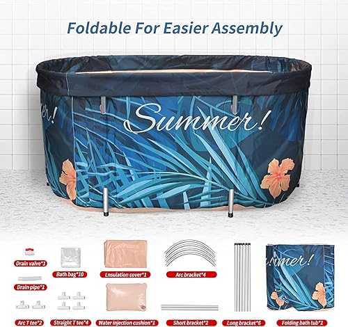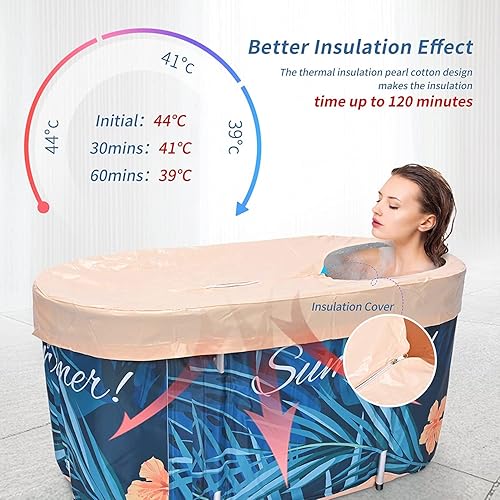 Kotsy Tragbare Badewanne für Erwachsene 120 x 57 x 57 cm,badewanne faltbar erwachsene mit 2 Ablauflöchern, Familien Badewanne mit Thermostatabdeckung eisbad(inkl. 10 Badetasche)