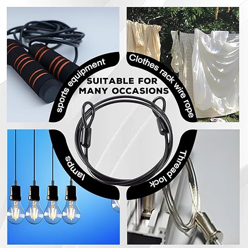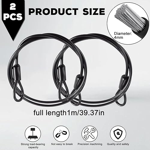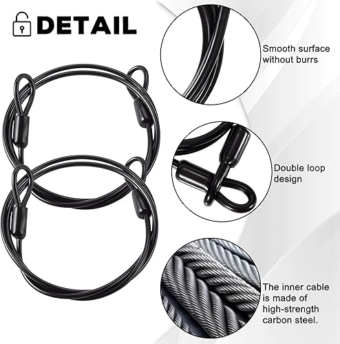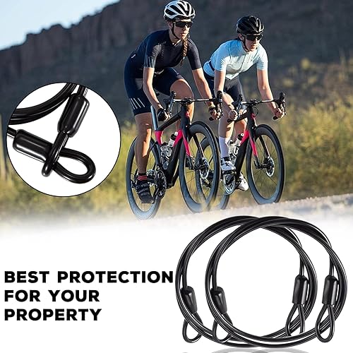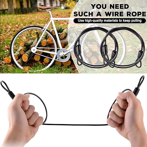 2 Stück Stahlseil Mit Ösen, Seilschloss, Stahlseil Ummantelt,Drahtseil Schloss ,Stahlseil mit Kunststoff Ummantelt, Langes Stahlseil 6mm für Fahrrad Kabelschloss