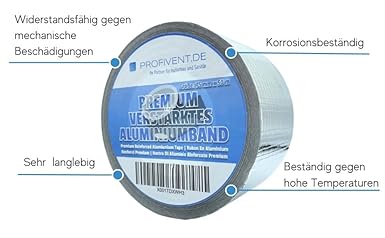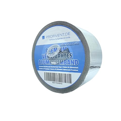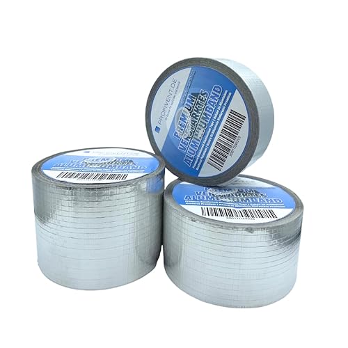 PREMIUM VERSTÄRKTES ALUMINIUMBAND Hitzebeständiges Wasserdichtes Alu Klebeband zum Reparieren von Metalloberflächen Dampfsperre Klebeband netzverstärkt Belüftung Isolierung 50m (50mm/50m)