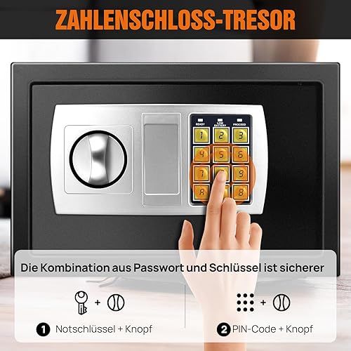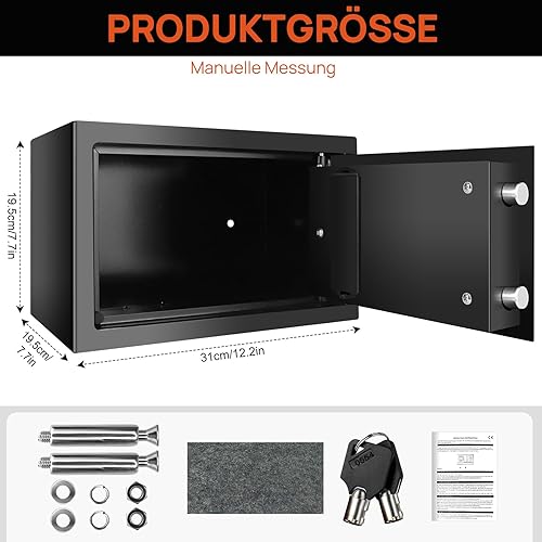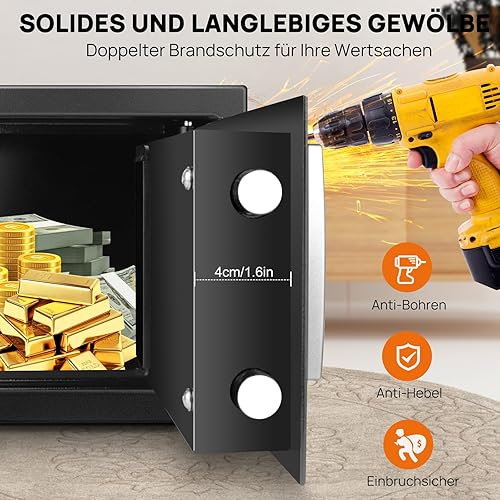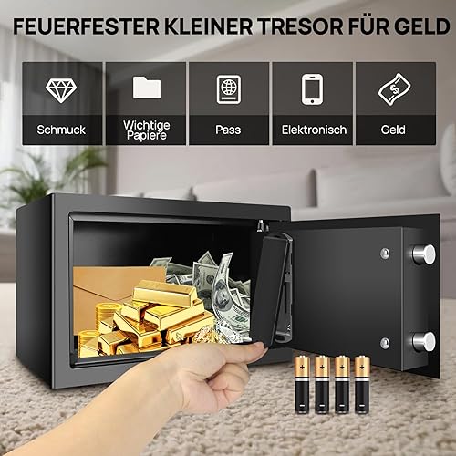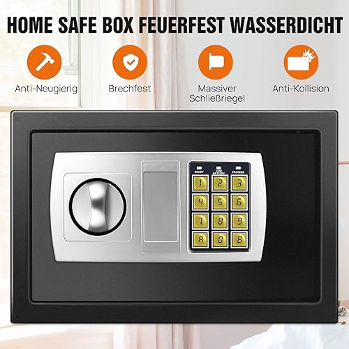 Tresor, Digital Elektronischer Safe, Sicherheitskasten Feuerfester und wasserdichter Sicherheitsschrank mit Schlüssel, Möbeltresor Für Schmuck Bargeld, 31x20x20cm