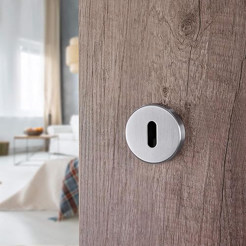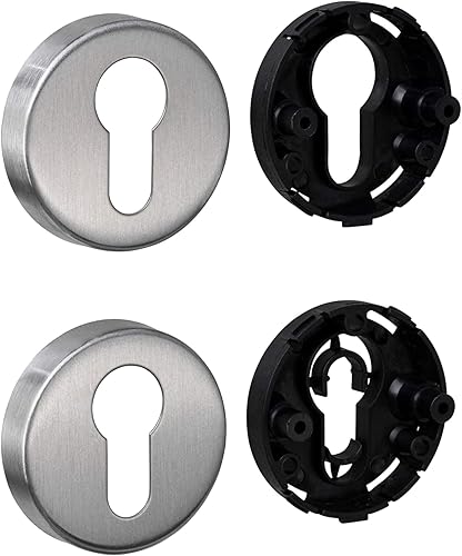 JUVA Schlüssel-Rosette Edelstahl matt massiv | H8550 | 1 Paar - Tür-Rosettenpaar Abdeckung für Zimmertüren | BB-Buntbart Innentür mit Befestigungsmaterial | Türbeschlag rund