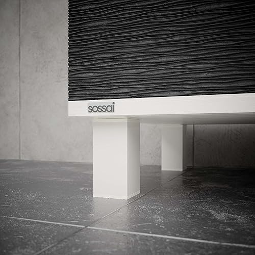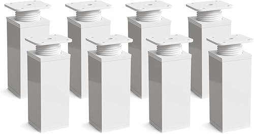sossai® Design-Möbelfüße MFV1 | höhenverstellbar | 4er Set | Vierkant-Profil: 40 x 40 mm | Farbe: Weiß | Höhe: 60mm (+20mm) | Hochwertige Holzschrauben inklusive