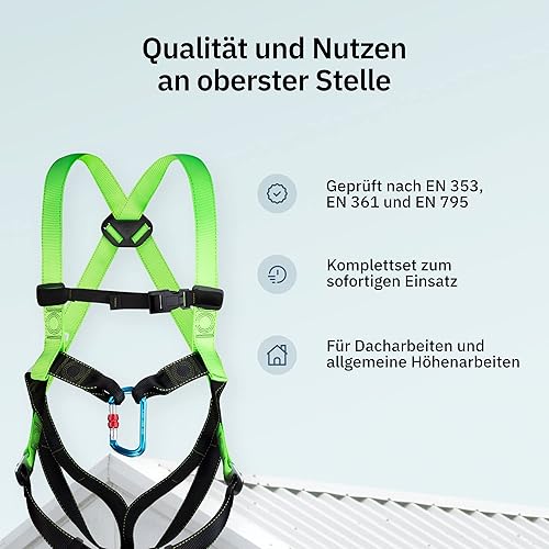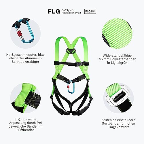 FLG Safetytec® Auffanggurt mit Aluminium Schraubkarabiner und Transporttasche - optimaler Fallschutz bei Höhenarbeiten