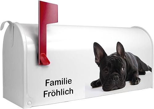 banjado® Amerikanischer Briefkasten individualisiert - US Mailbox/Letterbox mit Motiv Bulldogge 51x22x17cm - Postkasten Stahl aus Amerika – Briefkasten amerikanisch pulverbeschichtet