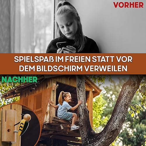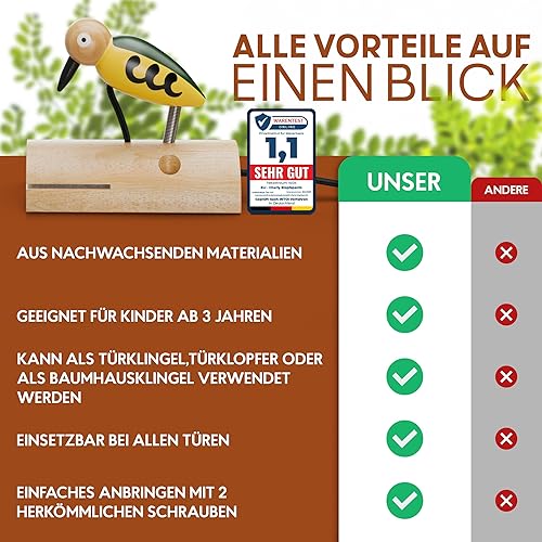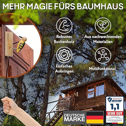 Eli® Klopfspecht für Kinder aus Holz - Klingel für Baumhaus - Spielhaus - Kinderzimmer - Haustür - Stelzenhaus - Kinderspielhaus - Glocke - Geschenk für Jungen und Mädchen