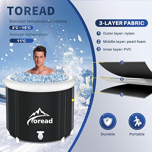 TOREAD Eisfass Eisbaden Tonne (85 cm Ø) XL Kältetherapie für Sportler Eisbad Eistonne, Ice Barrel Set, Mit Tragetasche