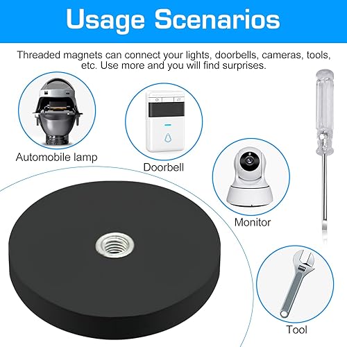 Nizirioo Neodym Magnete Gummiert Extra Stark 8 Stück Groß Magnete Stark Ø 43mm mit M6 Außengewinde und Schraubendreher 10 kg Haftkraft, Magneten Schraubbar für Schrauben Öse oder Haken
