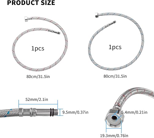 TOOINKCV Flexschlauch 3/8 zoll, 2 Stück Armatur G3/8 x M10 Wasserhahn Schlauch Verlängerung, Edelstahl Geflochtener Anschlussschlauch, Panzerschlauch 80cm, Flexschlauch Verlängerung für Mischbatterie