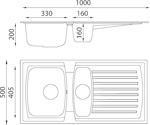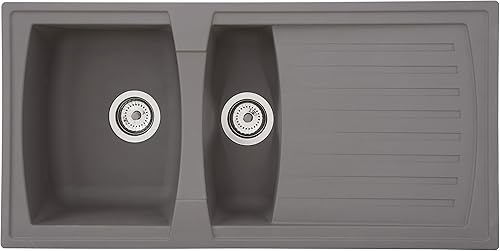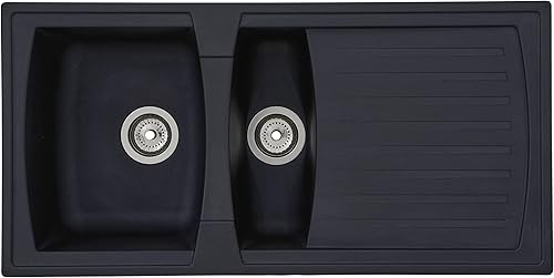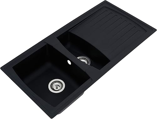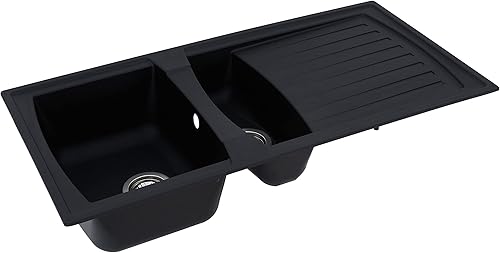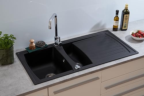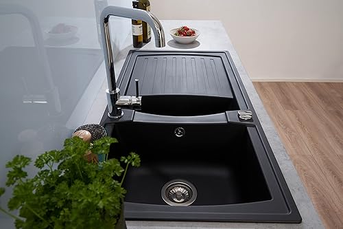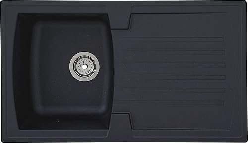 Respekta Boston Mineralitespüle in Schwarz / 1 Becken Einbauspüle in 86 x 50 cm/Spülbecken geeignet für Unterschränke ab 45 cm Breite