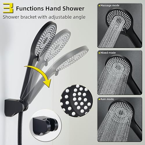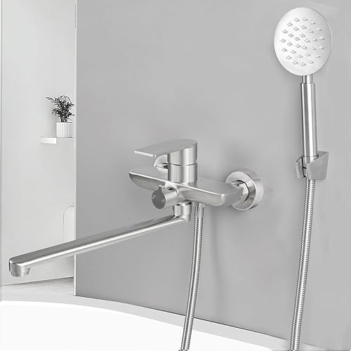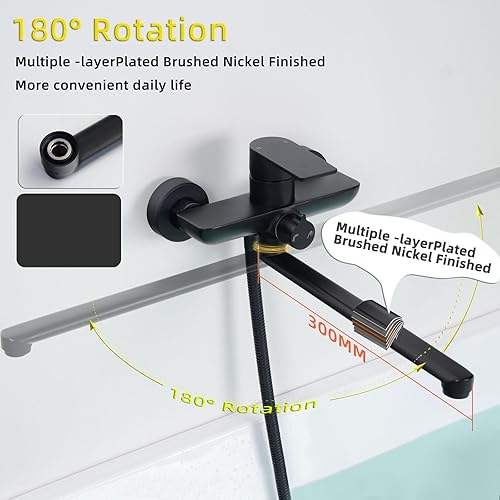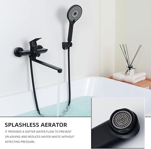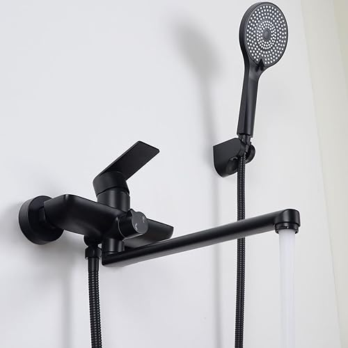 SHANFO Badewannenarmatur mit Handbrause, Wannenarmatur Langer Auslauf 30CM, Badewannen Armaturen Set, Schwarz, 8Y3OK