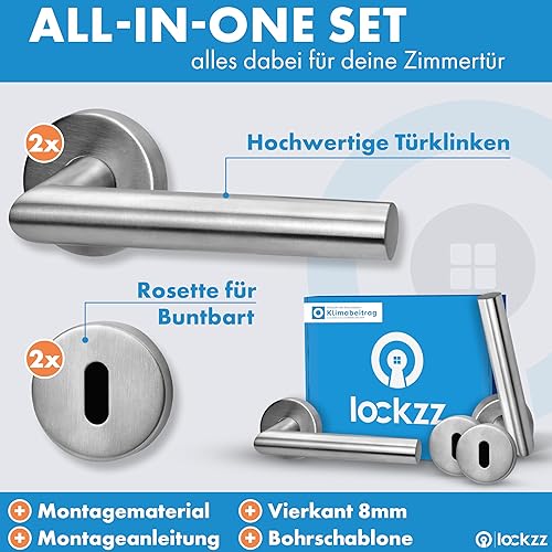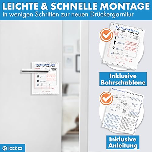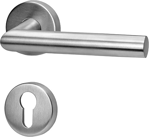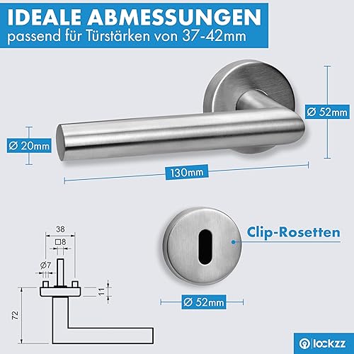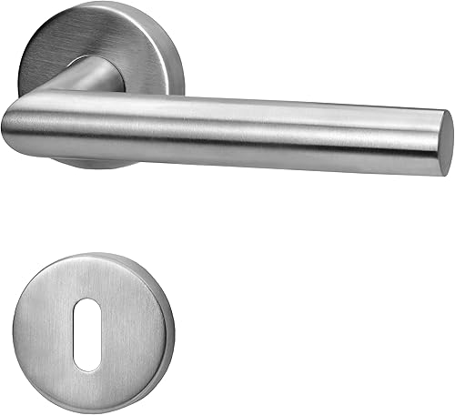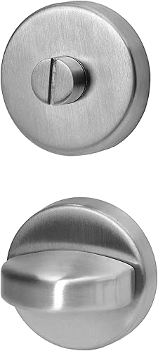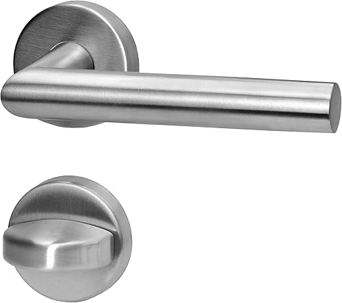 lockzz Türgriff Drückergarnitur Würzburg, Edelstahl matt gebürstet, Türbeschlag für Badezimmertüren, Rund-Rosette, L-Form, WC - Badezimmer
