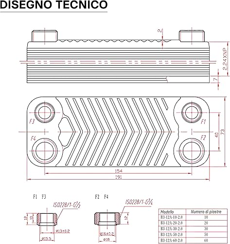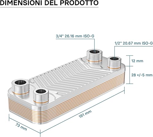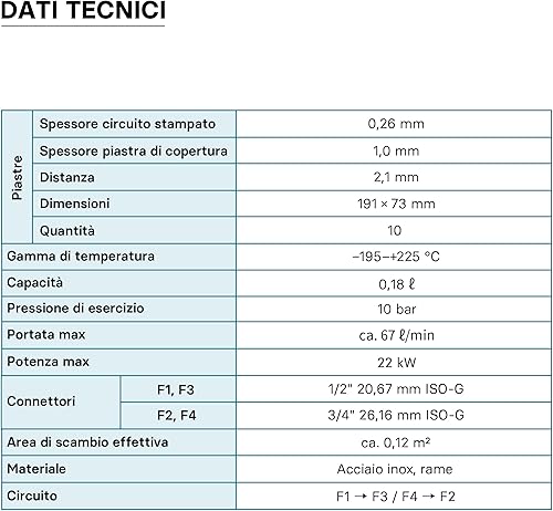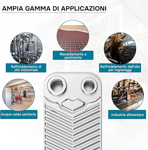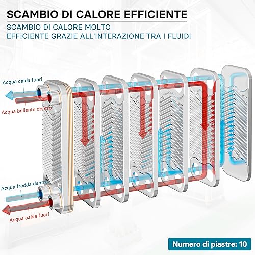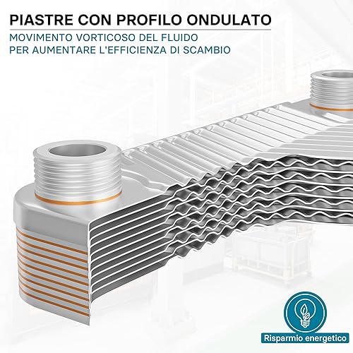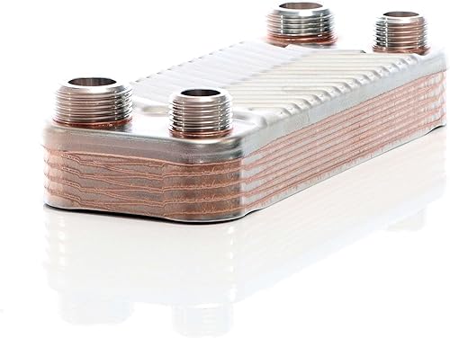 Wiltec Wärmetauscher 10 Platten, max. 22 kW, 4 m³/h 0,18 l je Durchgang, Plattenwärmetauscher aus Edelstahl als Wärmeüberträger