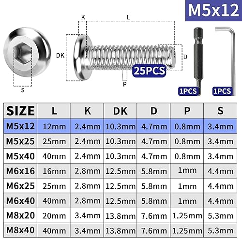 TXXATX 25 Stück M8 Schrauben Flachkopfschrauben M8x40mm Edelstahl Linsenkopfschrauben Vollgewinde Innensechskant mit Schraubendreher Bit Schraubenschlüssel Maschinenschrauben für Montage Wartung