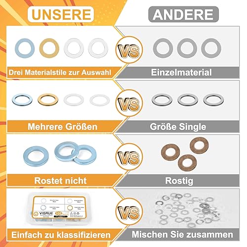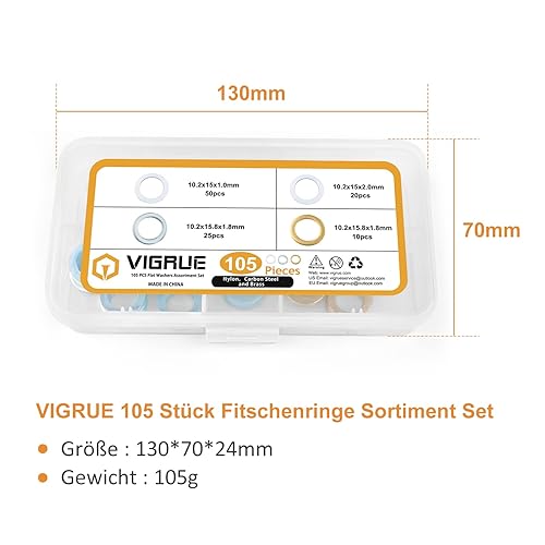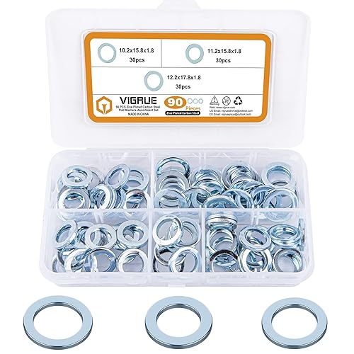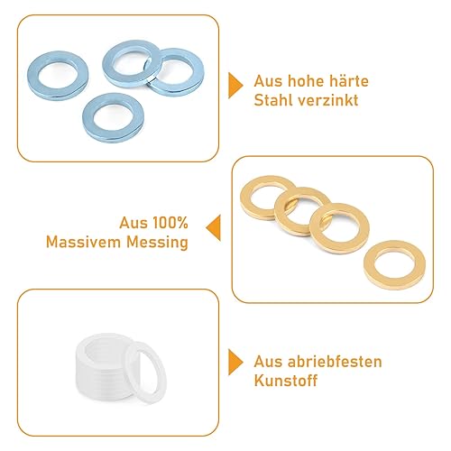 VIGRUE 90 PCS Fitschenringe Stahl verzinkt gemischt Sortiment Ø 10,2/11,2/12,2 mm, Fitschenringe Sortiment Set, Tür Unterlegscheiben Set Beilagscheiben in Sortimentskasten
