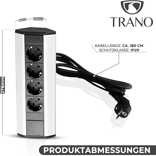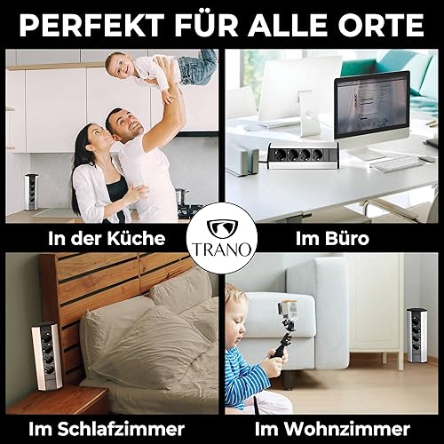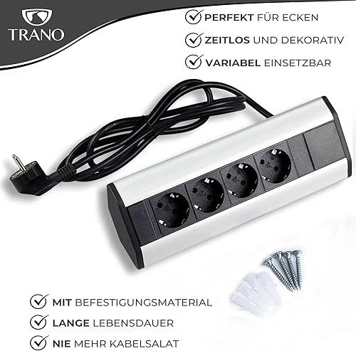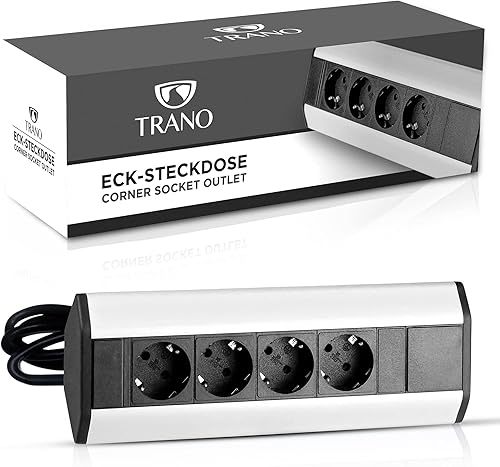 Steckdose für Küche und Büro - Ecksteckdose aus Aluminium und hochwertigem Kunststoff ideal für Arbeitsplatte, Tischsteckdose oder Unterbausteckdose 4-Fach Steckdosenelement | 4er Steckdose