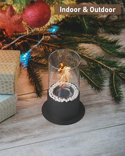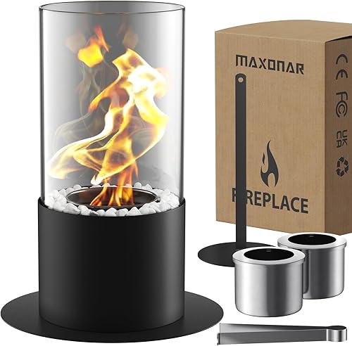 Maxonar Bioethanol Tischkamin Tischfeuer mit PU Pad Dekorative Steine Längere Brennzeit Tragbare Bio Ethanol Feuerstelle Kleiner Kamin für Indoor und Outdoor Balkon Terrasse Wohnung Garten Deko