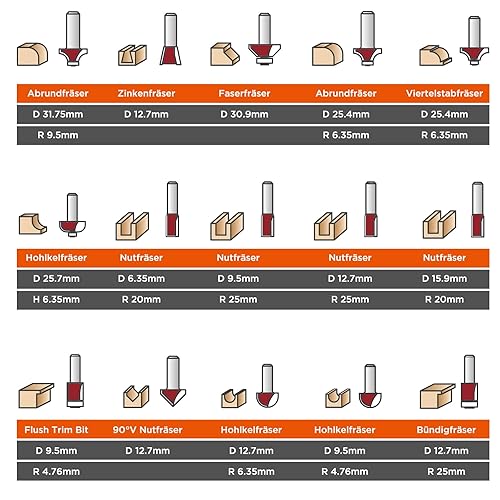 KOWOOD Fräser Set für Oberfräsen 15 tlg, Schaft 8mm Oberfräser Set Holzbearbeitung Swerkzeugen für Anfänger in Holz-Koffer,Holzfräser in Industrie-Qualität für hartes und weiches